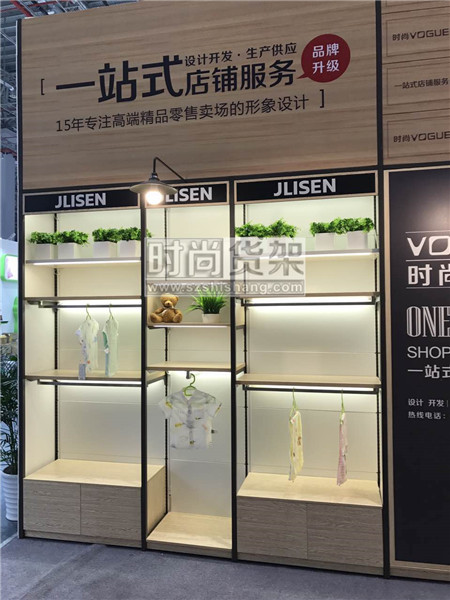 本次展會,時尚貨架通過一組最新的母嬰店貨架產品,打造了以“體驗”為核心的店鋪設計方案。