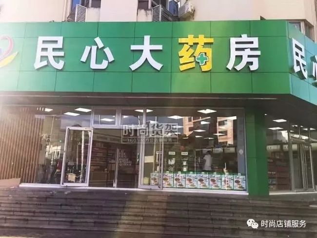 這間新開設的民心大藥房形狀呈不規則的梯形,店鋪本身容易產生死角,但通過擺放幾組休閑座椅將死角區域打造成休閑體驗區,巧妙的將死角活躍起來,還能帶動店內保健品和醫療器械的銷量。