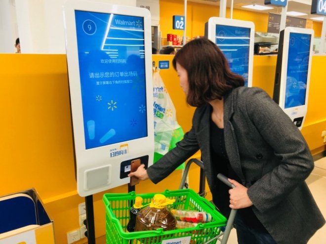 近日,沃爾瑪在深圳開出首家智能門店“惠選”超市。惠選超市標識設計沿用沃爾瑪藍色,主色調綠色代表新鮮,輔助色橙色代表便捷。