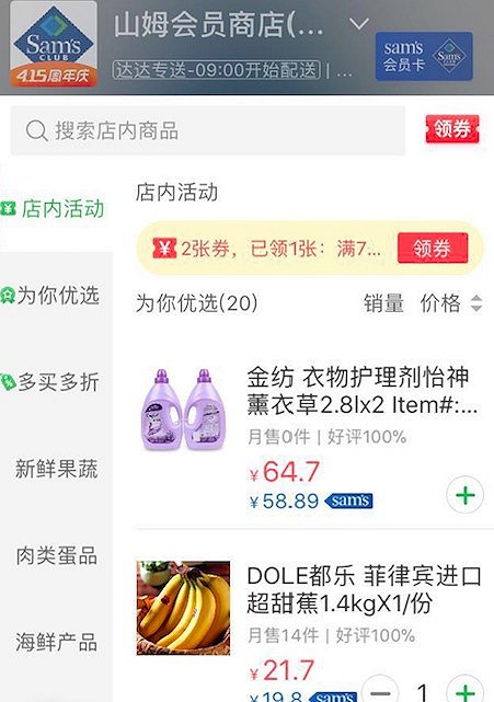 此外,針對極速達和京東到家服務,山姆還可能拆包部分商品,以滿足會員對生鮮和日常商品少量多次購買的需求。